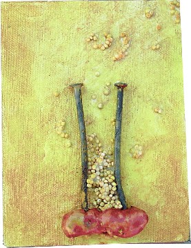 Los pequeños (12x9cm): son protagonizados por un par de clavitos entre tierras y otros dolores. Los clavitos son las parejas que viven su amor como se enseña en Occidente.