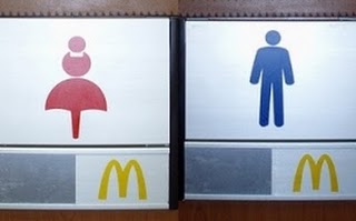 http://1.bp.blogspot.com/_5A9-dHdt46Q/TGkOpeaM67I/AAAAAAAAAVQ/cVK0Kdw2Uds/s320/used12.jpgMuchos carteles de aseos no representan al hombre como la figura universal. En lugar de esto, la distinción se hace poniendo de manifiesto diferencias entre cómo se representan la masculinidad y la feminidad. Así, los carteles comunican ideas simplificadas sobre qué es un hombre o una mujer.