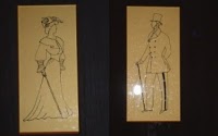 the male is drawn very simply with perpendicular lines but the female is more complex with extra lines to indicate her bust and a skirta slightly more stylized version of standard washroom signsthe man is a rectangle with legs, the woman is a rectangle with legs and a bulge around her hips to indicate a skirt